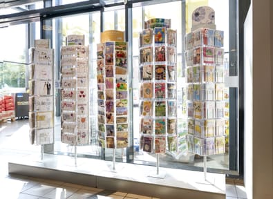 Jeder kennt Drehdisplays für Kartenserien. Vor allem unsere ellipsenförmigen Drahtdisplays erfreuen sich einer großen Beliebtheit.
