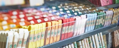 Zum Beispiel bieten wir viele Bänder, Papiere und Karten unverpackt an bzw. verzichten auf Verpackungen aus Plastik. Zudem wird ein Teil unserer Grußkarten, Geschenkverpackungen und Servietten aus recycelten Rohstoffen hergestellt.